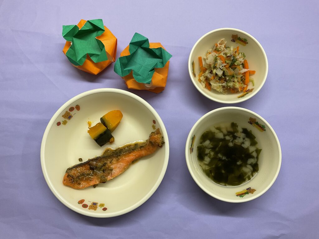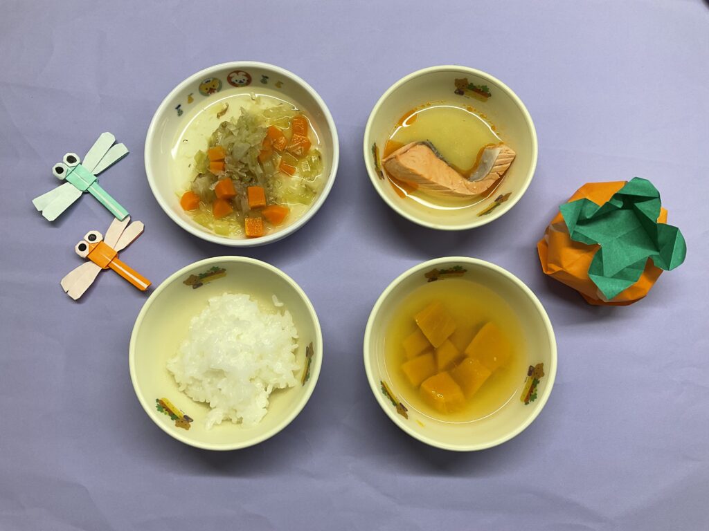 •鮭の味噌煮•野菜のおかか煮•みそ汁(南瓜)