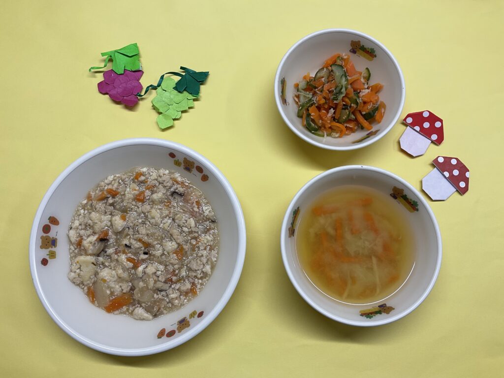 •豆腐の柔らか煮•野菜の煮物•みそ汁(人参•南瓜)