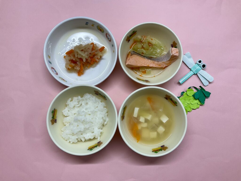•鮭のスープ煮•切り干し含め煮•みそ汁(豆腐•玉ねぎ•人参)
