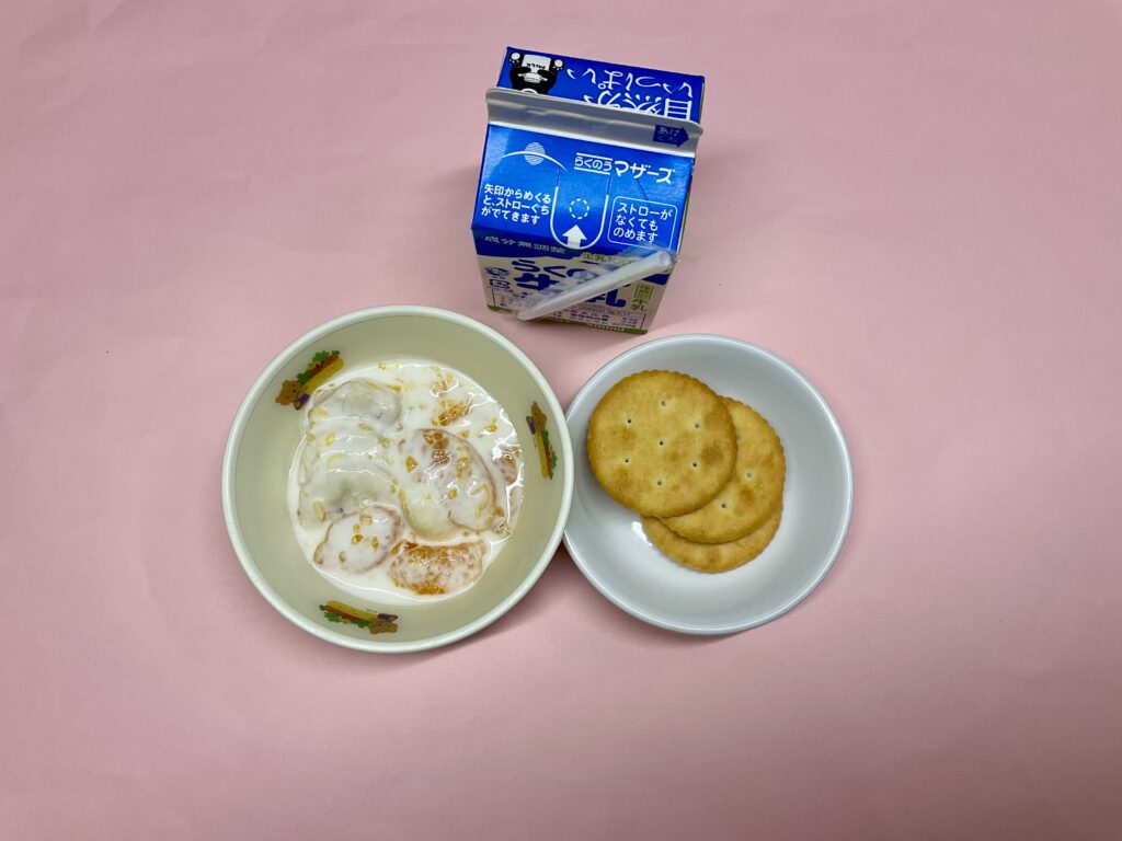 「ヨーグルト和え」と「クラッカー」です🍌🍊