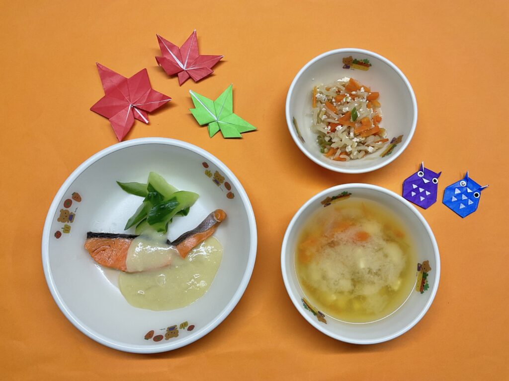 •魚のクリームソースがけ •切り干し含め煮•みそ汁(豆腐•玉ねぎ•人参)