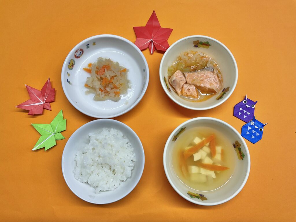 •鮭と野菜の煮物•切り干し含め煮•みそ汁(豆腐•玉ねぎ•人参)