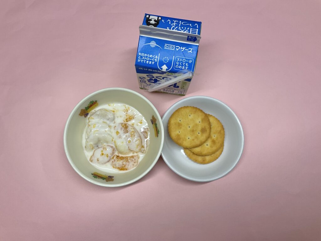 「ヨーグルト和え」と「クラッカー」です🍊🍌