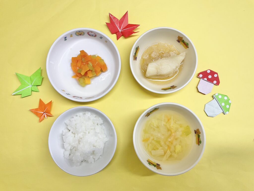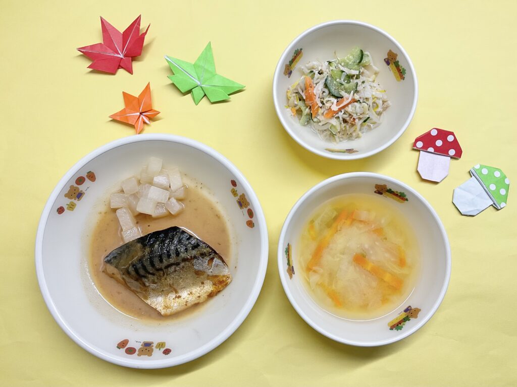 ・煮魚・もやしのごまマヨネーズ・みそ汁(白菜・人参・玉ねぎ)