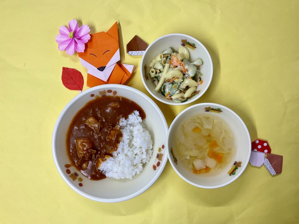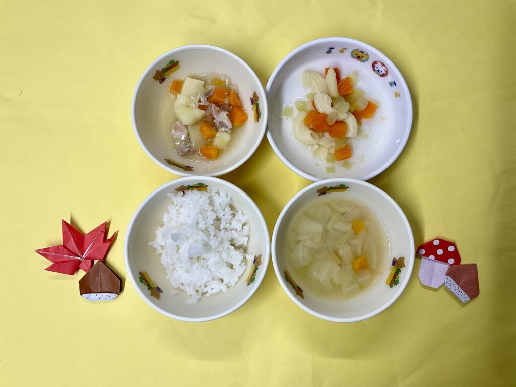 ・ハヤシシチュー・マカロニサラダ・野菜スープ