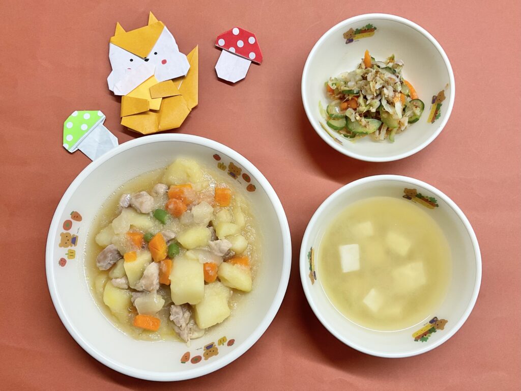 ・うま煮・和風和え・みそ汁(豆腐・玉ねぎ)