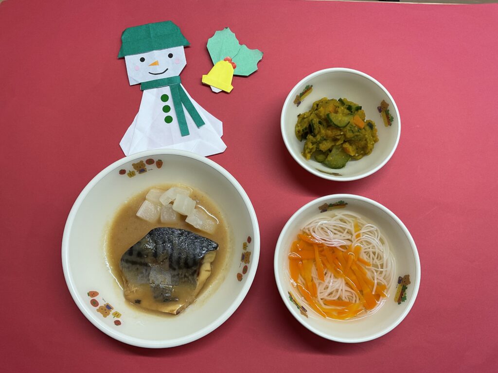 ・魚のみそ煮・南瓜サラダ・すまし汁(そうめん・人参)
