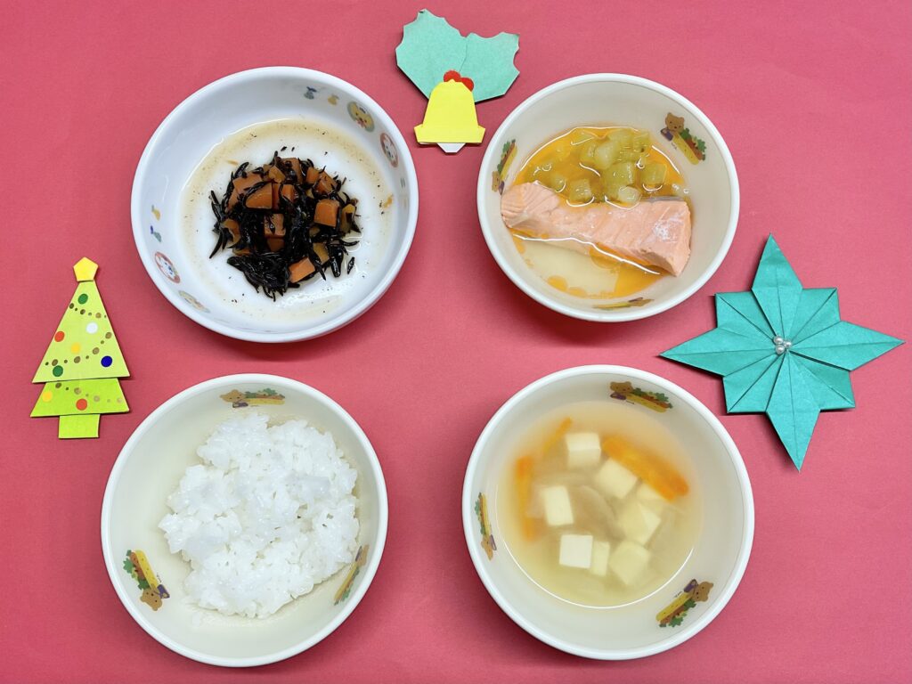・魚のスープ煮・ひじき炒め煮・みそ汁(豆腐・玉ねぎ・人参)