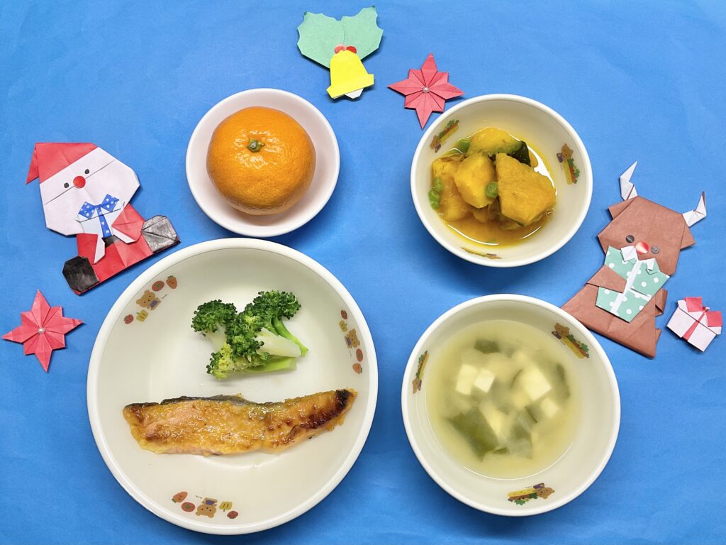 ・魚のチーズ焼き・南瓜のおかか煮・みそ汁(玉ねぎ・豆腐・若布)・みかん