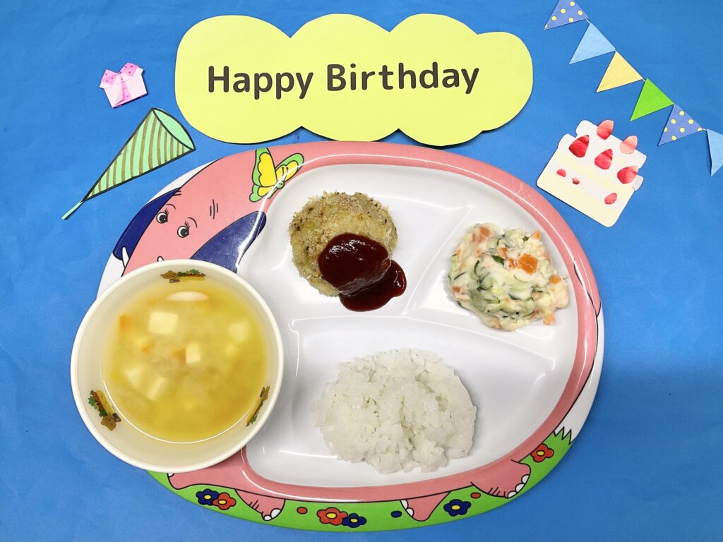 ・ごはん・ポテトサラダ・メンチカツ・みそ汁(豆腐・玉ねぎ・人参)