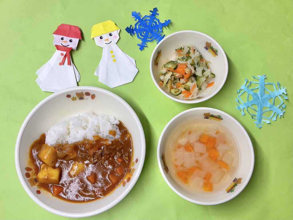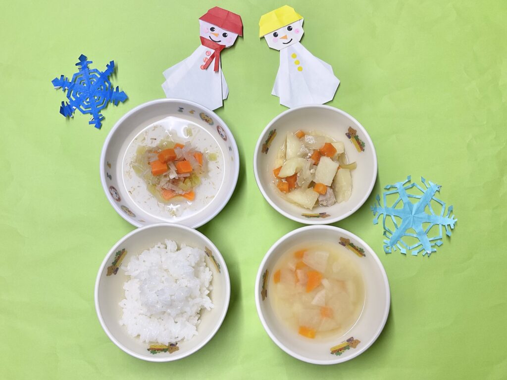•ハヤシシチュー•フレンチ和え•野菜スープ(大根•人参•玉ねぎ)