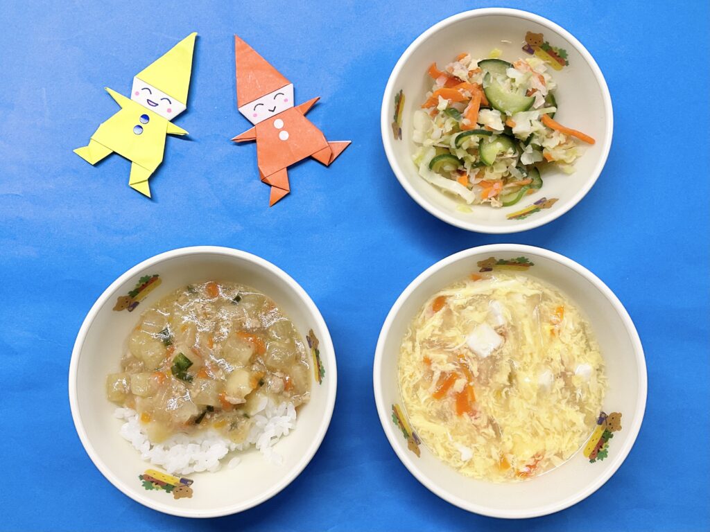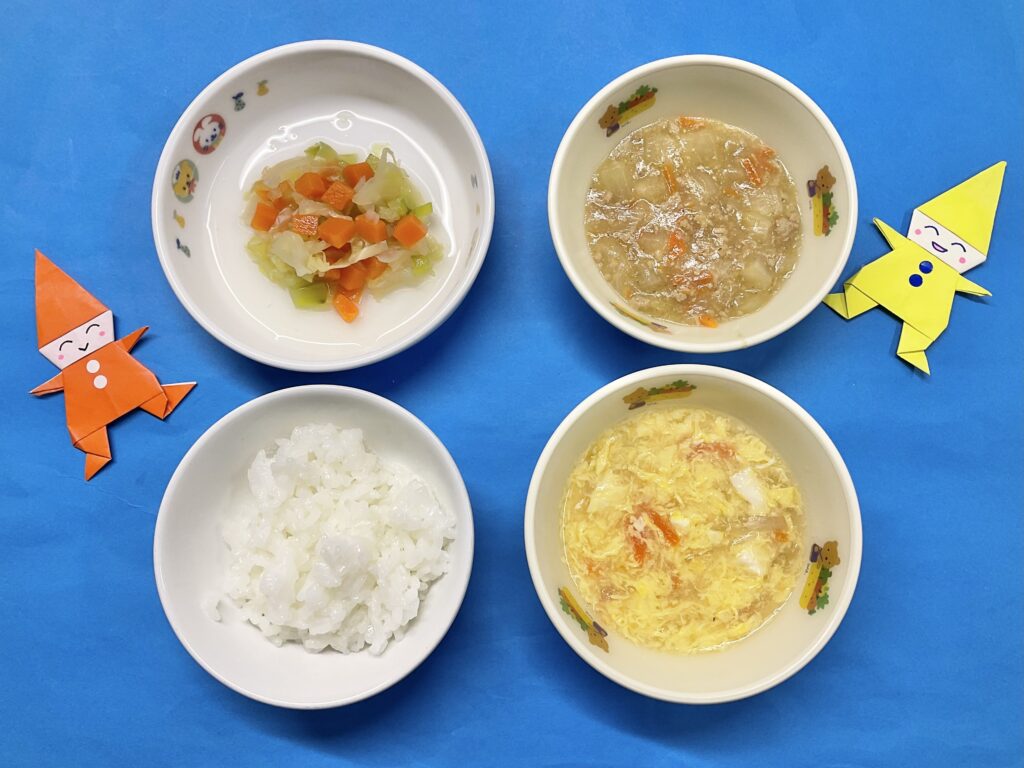 •麻婆大根•野菜の煮物•かきたま汁(玉ねぎ•人参•豆腐•卵)