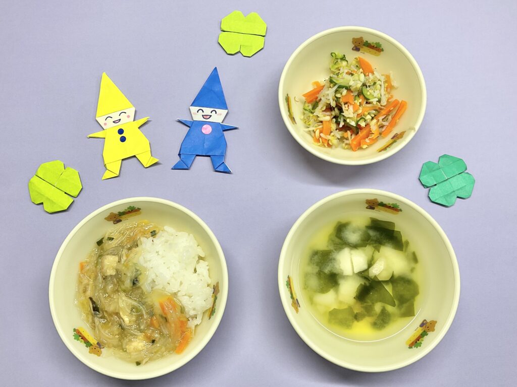 ・豚肉と春雨のあんかけ丼・ごま和え・みそ汁(ふ・若布)