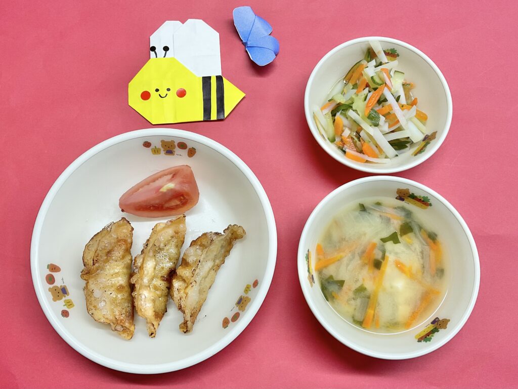 ・揚げ餃子・シャキシャキサラダ・みそ汁(豆腐・玉ねぎ・人参・若布)