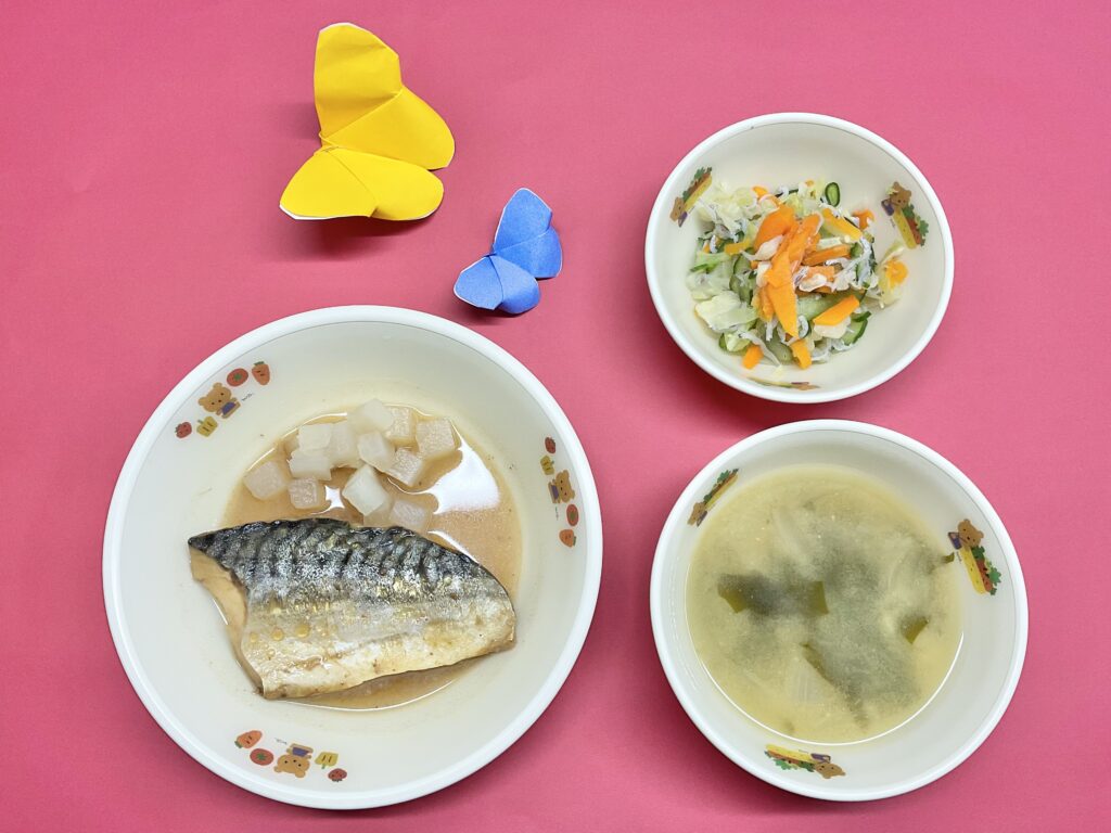 ・煮魚・野菜の煮物・みそ汁(人参・玉ねぎ)