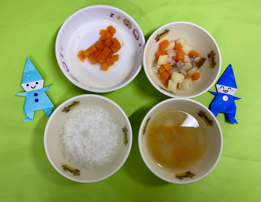 ・鶏じゃが・人参の煮物・みそ汁(玉ねぎ・人参・豆腐)